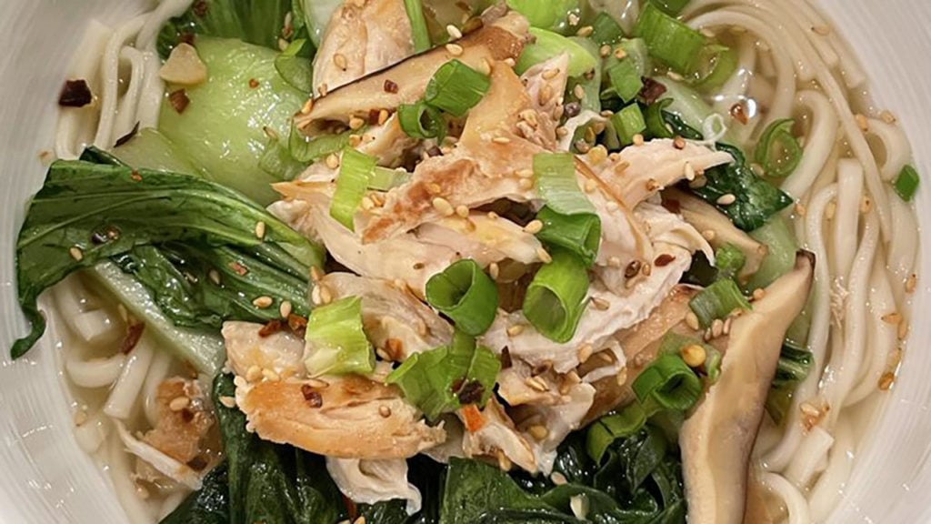 Nothing is better for chilly nights than a hearty noodle soup. This Chinese soup blends baby bok choy, shitake mushrooms with your protein of choice, and a homemade bone broth that will boost your immune system and delight your taste buds.