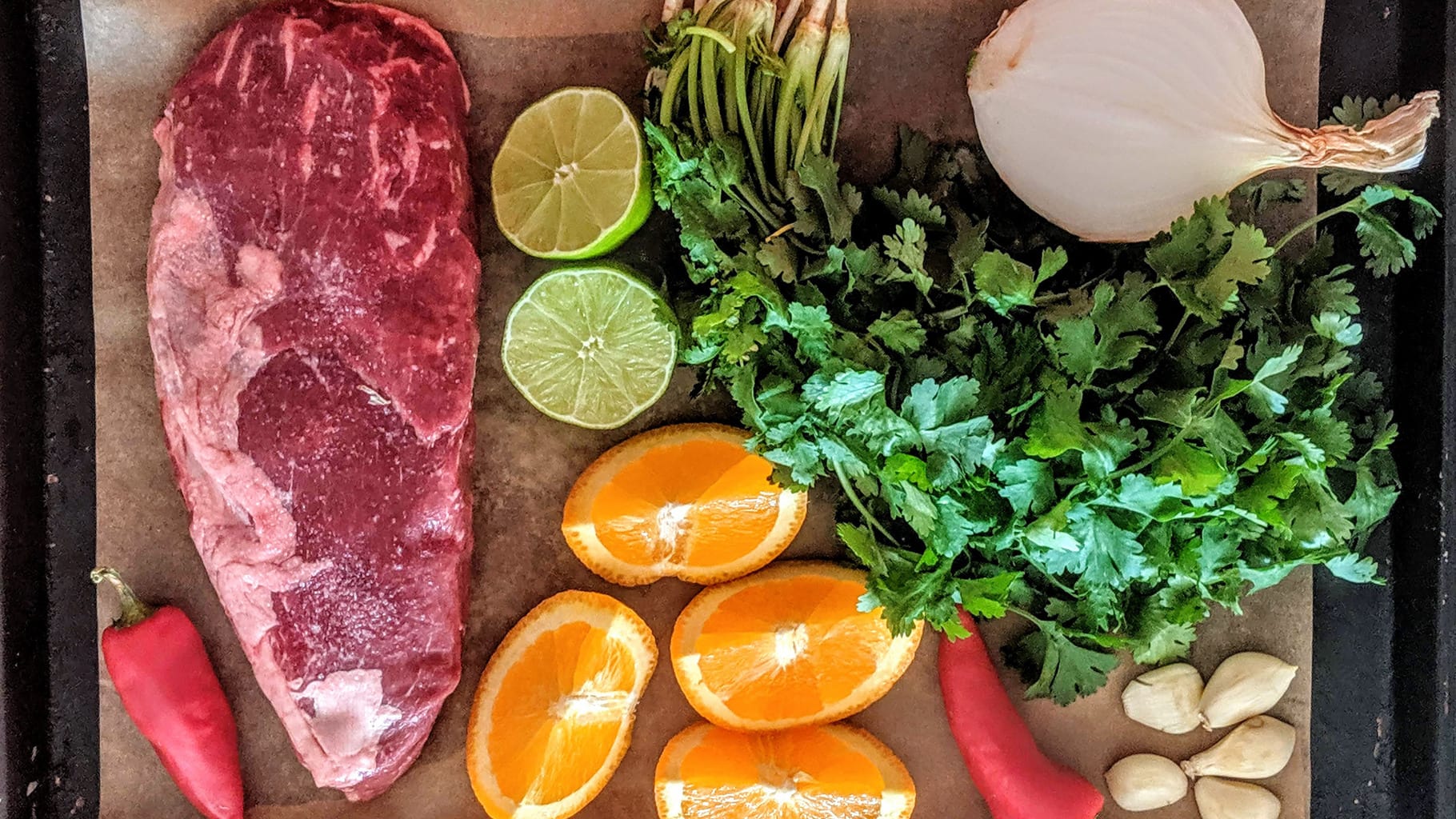 It’s the marinade that really builds the flavor here, followed by beautiful char from the grill. In this marinade, you’ll find garlic, onion, Fresno pepper, orange juice and zest, beer, and more.