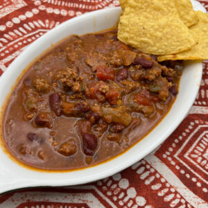 This fast, well-stocked chili makes a lot, so be prepared to have plenty of leftovers, particularly good for lunch or spooned over cheese omelets for a hearty weekend breakfast. The leftovers can also be frozen in a sealed container for a fast meal in the weeks ahead.