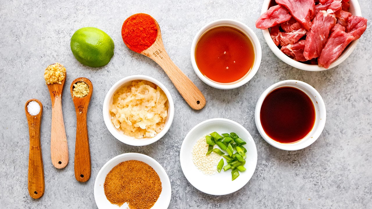 The unique marinade includes ripe, grated Asian pear for sweetness, texture, and tang. The acidity in the pear also helps to tenderize the meat. If you can’t find Asian pears, a traditional pear will work just fine. To add a subtle spice to the marinade, use gochugaru, the bright red Korean red pepper. This powder is less spicy than cayenne and creates a balanced heat that lets the other flavors shine through.