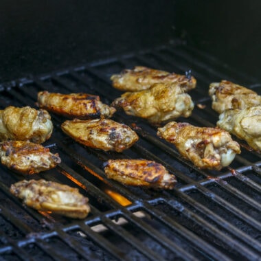 - Remove the chicken wings from the marinade and let any excess drip off. Place the wings on the preheated grill and cook for about 20-25 minutes, turning occasionally, until the wings are cooked through and have a nice char.