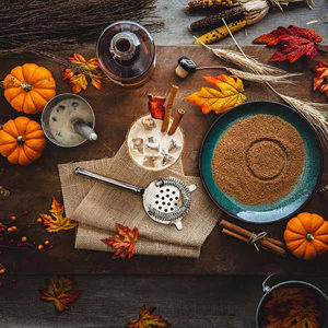 • Moisten rim of glass with simple syrup and rim with pumpkin spice sugar mix.
