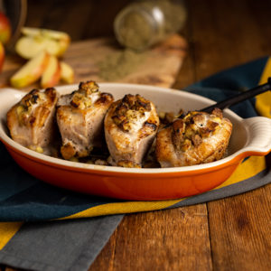 These baked stuffed pork chops bring an incredible combination of apple, sage, onion, and savory pork to your dinner table. Served with your favorite veggie, this easy recipe is sure to be a household favorite.