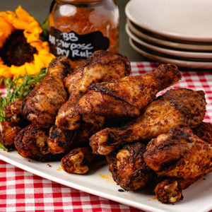 These drumsticks feature a dry rub made with a few pantry-staple spices. They’re low maintenance and can be dressed up with barbecue sauce or enjoyed as-is!