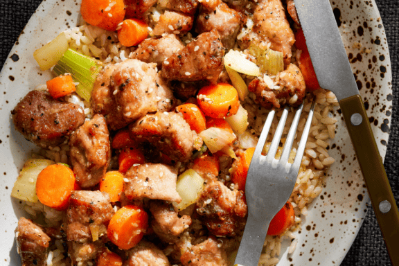 We often think of pork shoulder for long, slow braises, but it actually can thrive in a quick high-heat setting, too. Here we take bite-size cubes of ButcherBox pork shoulder, sauté them with chopped sweet fennel and carrots, then simmer it all in a punchy, peppery lemon-honey pan sauce. You’ll…