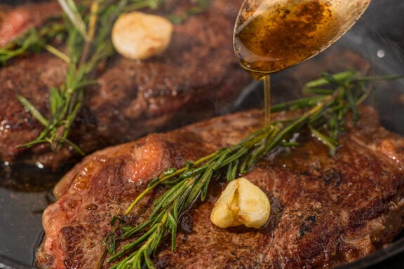 Strip loin steak–also known as NY Strip–is a very tender cut, one of the reasons why it’s so popular. It comes from the short loin, the back of the cow, which is also where you’ll find popular cuts like tenderloin. In fact, if you’ve ever indulged in a porterhouse steak…