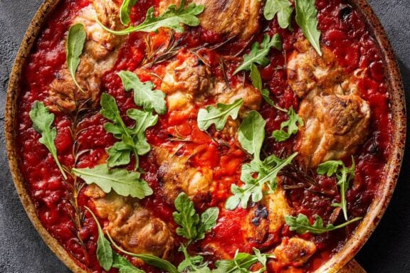 Succulent and juicy salt and pepper chicken thighs browned in butter, a tangy tomato sauce and seared mushrooms—this dish is simple but super comforting. All you really need is maybe a few thick slices of garlic bread or some creamy polenta to take this up a notch. If you like…