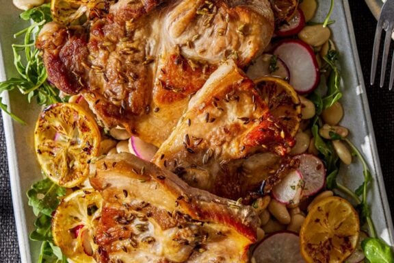 Pan-Roasted Pork Steaks with White Bean and Radish Salad