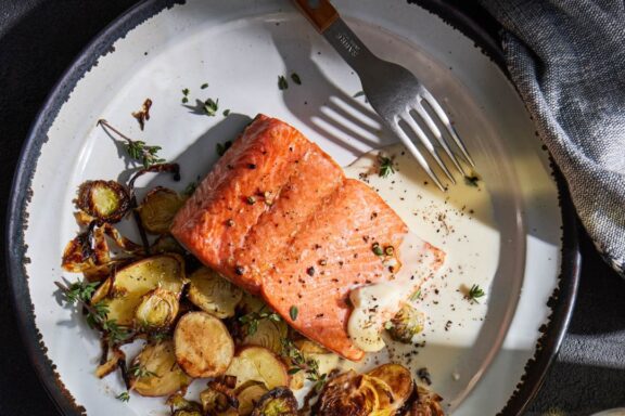 Our Sockeye Salmon, a luxury in itself, is blanketed in a gentle yet rich and buttery sauce and served with thinly sliced and roasted potatoes and Brussels sprouts. As this is technically a sheet-pan recipe, most of the cooking happens in the oven, where the potatoes and sprouts are first…