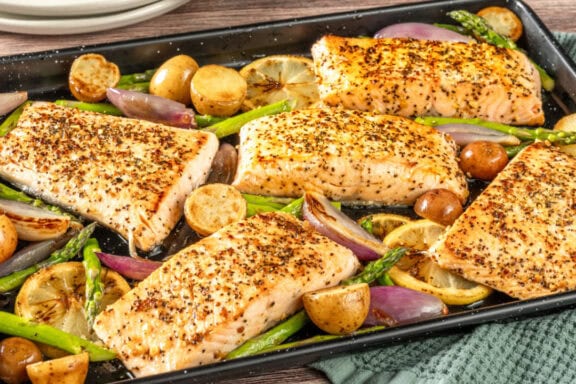 This roasted salmon dish is a game-changer. Featuring tender ButcherBox salmon, seasoned potatoes, shallots, and asparagus, all roasted to perfection, it’s a balanced meal that’s as healthy as it is delicious. Finished with a squeeze of lemon and ready in under an hour, this recipe simplifies dinner while delivering incredible…