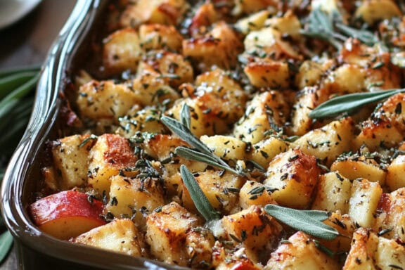 Looking for a standout side dish to elevate your Thanksgiving dinner? This apple, sage, and pork stuffing blends sweet and savory flavors in the most delicious way. A combination of diced apples, ground pork, and fresh herbs is tossed with toasted brioche and sourdough croutons, then soaked in a rich,…