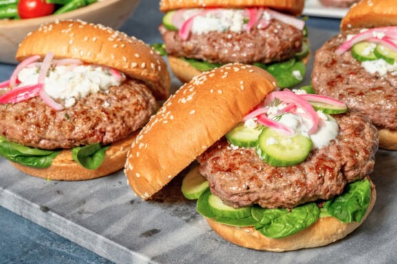 Discover the bold flavors of the Mediterranean with these lamb burgers, featuring ButcherBox’s premium ground lamb. Topped with homemade tzatziki and tangy pickled red onions, this recipe is perfect for anyone looking to elevate their burger game. These Mediterranean lamb burgers are made with ButcherBox's ground lamb, topped with creamy…