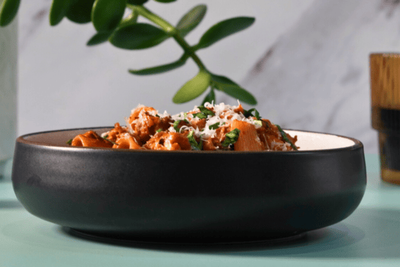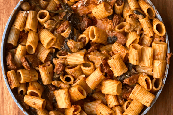 Creamy Tomato Rigatoni with Pork Breakfast Sausage