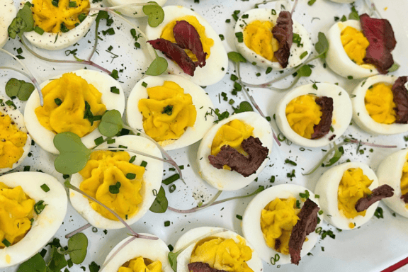 Indulge in a bold twist on a classic with our Deviled Steak and Eggs, featuring tender ButcherBox filet mignon for a luxurious bite. Indulge in a bold twist on a classic with our Deviled Steak and Eggs, featuring tender ButcherBox filet mignon for a luxurious bite.