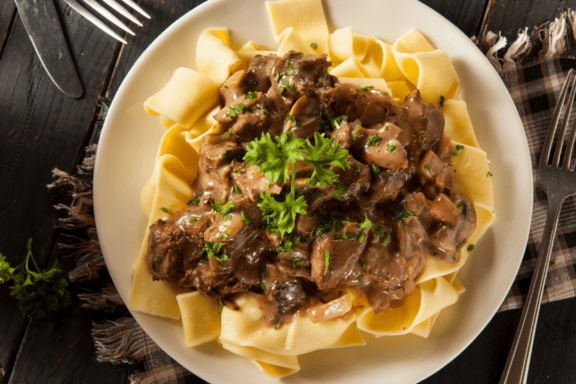 Ground beef makes the prep for this dish simple and quick, and the creamy mushroom sauce gets a tang from Greek yogurt. It’s an easy 30-minute meal!