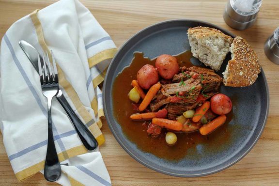Nestle a seared chuck roast in the slow-cooker with root vegetables, add beef stock and tomatoes, and wait for dinner to cook itself. It’s sure to be a family favorite.