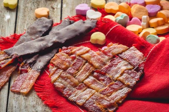 Get your salty/sweet fix with this easy-to-make treat. Nothing says love like bacon + chocolate!