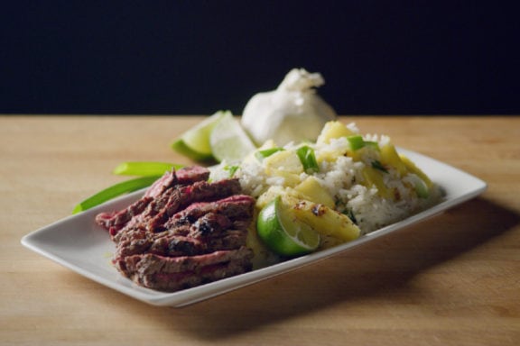Pineapple Marinated Flat Iron with Coconut Pineapple Rice