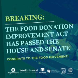 To encourage more food companies to donate surplus food, a group of food organizations and non-profits joined together to advocate for an update to the Bill Emerson Act. This group, the Healthy Living Coalition, which was comprised of companies like ButcherBox, WeightWatchers, GrubHub, Panera Bread, and more, worked with Massachusetts Congressman, Jim McGovern, to introduce a new version of the bill called the Food Donation Improvement Act. This new bill was aimed at increasing clarity of the legal protections in the original act and extending the scope of protected donors. As an example, during the height of the pandemic, organizations like schools and restaurants that were critical to serving the food needs of thousands of Americans, were not protected by the current language in the bill from a food safety and quality standpoint. The new language now legally protects these types of organizations and enables them to donate food directly to those in need.
