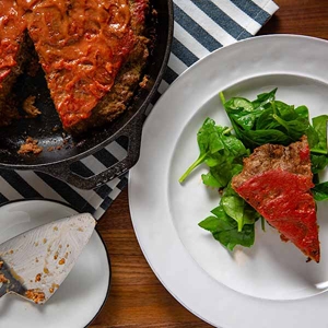 Here’s the secret to a super-quick meatloaf dinner: preheat a cast iron skillet in the oven while you mix up the ingredients. It bakes in only 20 minutes, making it an ideal weeknight dish that’s big on flavor.
