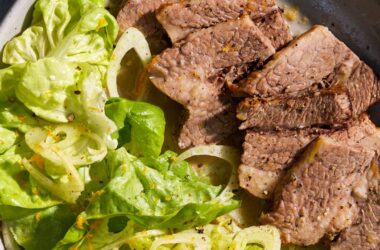 Brisket is a favorite for rich, wintery braises with root vegetables–but it also can be a perfect cut for the transition to spring. Here we simmer it in a mix of tangy citrus juices and serve it with a butter lettuce and shaved fennel salad, and suddenly brisket takes on…