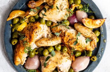 A whole roast chicken is always impressive and here we do that, and we also make a sauce for the chicken along the way. Pitted olives, shallots and half-moons of lemon roast alongside until caramelized. Once the chicken is done cooking, those are turned into a sauce with a little…