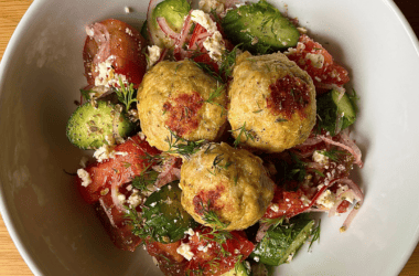These chicken meatballs are quick, easy, and delicious. We love them over a simple greek salad, but the options are unlimited!