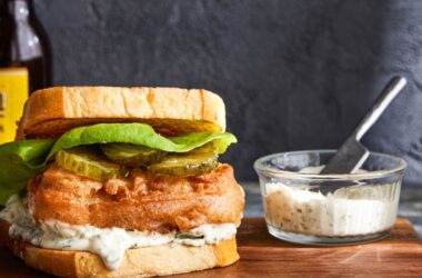 Part of the fun of cooking at home is being able to recreate your favorite fast food dishes in a more sustainable and healthy-ish way. Here, ButcherBox’s Cod is battered and deep fried and served on soft and sweet brioche. To really liven up the dish, there’s a tartar sauce…