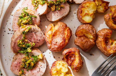 ButcherBox’s pork tenderloin cooks perfectly in an air fryer, where the evenly dispersed heat keeps the lean, sweet meat from overcooking. It’s paired with crispy, golden fried potatoes, and it all comes together thanks to a nutty, herbaceous and very citrusy sauce. A splash of brandy (or other booze of…