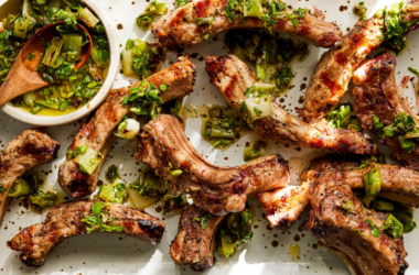 Quick-Grilled Pork Ribs with Charred Scallion Sauce