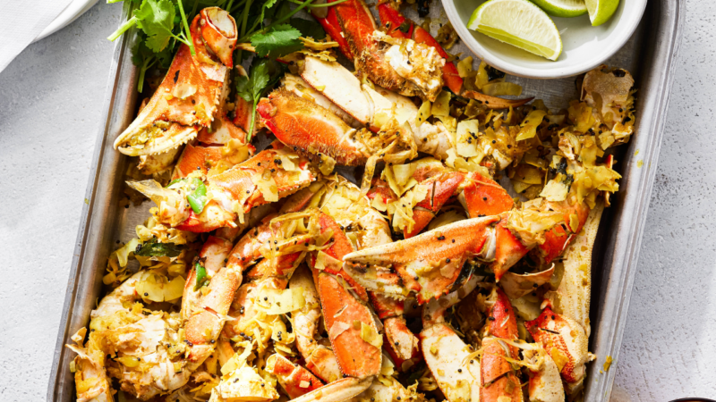 ButcherBox’s Dungeness Crab Legs & Claws are fully cooked and partially cracked open, but having a set of crab leg crackers around will help you pull more meat out of the shells. A kitchen mallet also can come in handy here. If curry leaves are difficult to find, look for makrut lime leaves, which have a similar flavor profile.