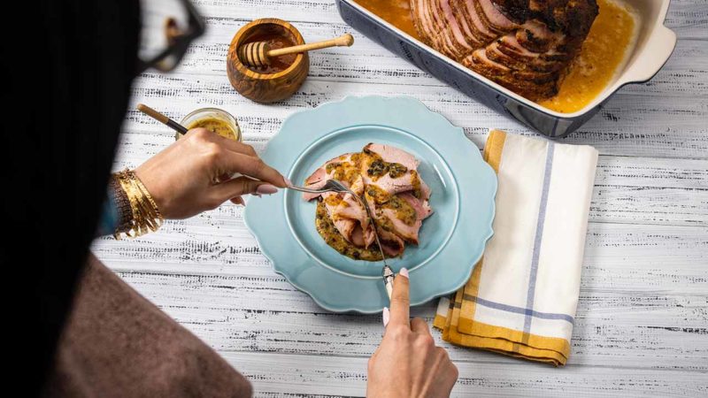 - Serve ham with remaining glaze as a sauce on the side. Enjoy!