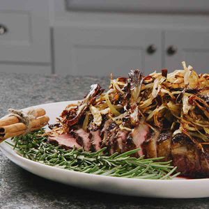 The New York strip roast is a lean cut that comes from the loin. Picture several cuts of this beef side by side, and you have a beautiful meal that’s ready for the roasting pan—and your holiday table. Just cook it with the fat side up to keep the meat tender and juicy.