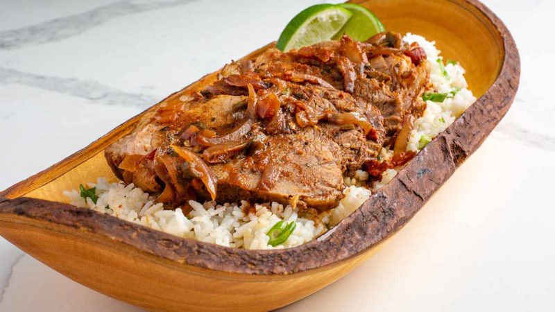 - Let the roast rest in the covered Dutch oven for 8 minutes once removing from oven. Slice and serve with rice and beans or just a simple salad. Enjoy!