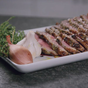 - Roast on center rack in oven for 90 minutes or until thermometer inserted into thickest part reads 110℉.