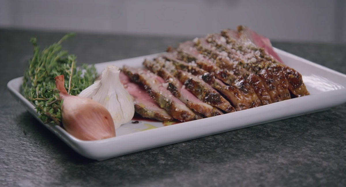 - Roast on center rack in oven for 90 minutes or until thermometer inserted into thickest part reads 110℉.