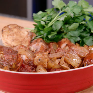 - Add onions, fennel and reduced balsamic to slow-cooker as well as remaining ingredients