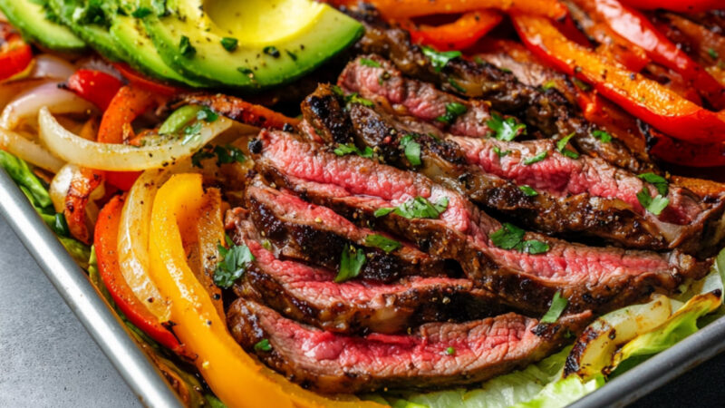 Savor a bold and refreshing meal with these Flank Steak Fajitas, featuring tender roasted steak, colorful veggies, and a creamy cilantro lime dressing. Served in crisp lettuce cups, this dish is packed with flavor and simple to prepare. ????️????