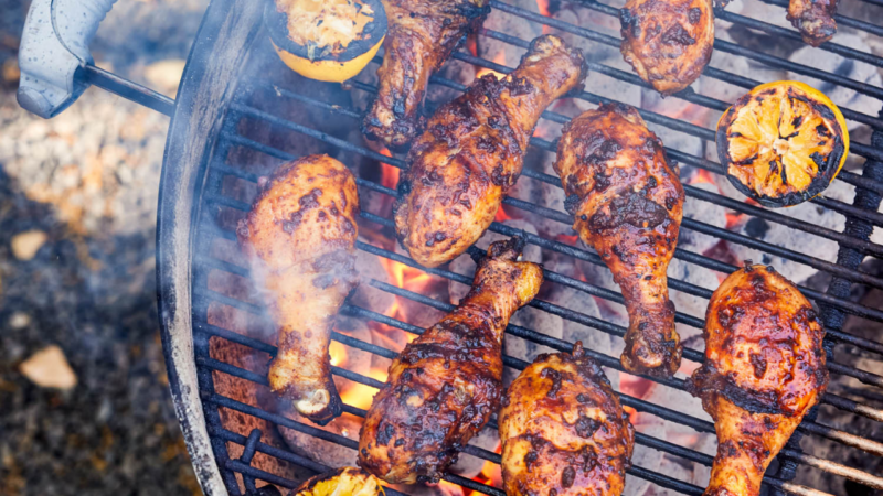 - Thirty minutes before you’re ready to cook, take the drumsticks out of the fridge. Prepare a charcoal or gas grill for medium heat, making sure to clean the grates and lightly slick them with a kitchen rag or brush dipped in canola oil. Lightly brush the lemon halves with canola, sprinkle lightly with salt and set on a baking sheet.