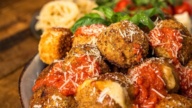 This meatball dish is a twist on an Italian cuisine classic. It comes together with simple pastry staples like Italian seasoning, black pepper, and tomato paste. Prepare this as a game day appetizer by forming smaller balls or enjoy it as a main dish. Serve with spaghetti or your choice of whole wheat pasta to keep things light. Top with fresh basil and red pepper flakes to enhance the mild flavors.