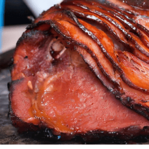 - Remove the ham from the oven, baste a final time, place on a platter and serve.