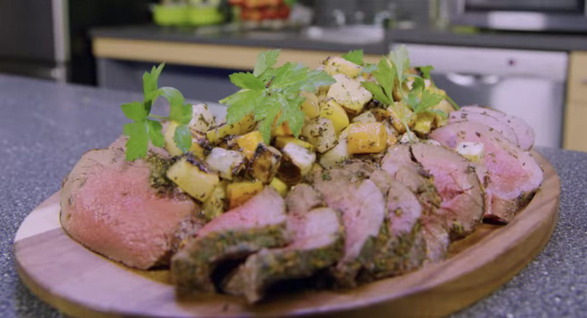 Holiday-Spiced Whole Beef Tenderloin with Roasted Root Veggies