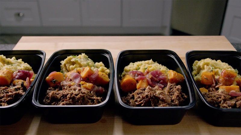 - Split roast, dirty mashed potatoes and citrus carrots into 6 reheatable containers. Drizzle each container with sauce and enjoy lunch or dinner for the week!