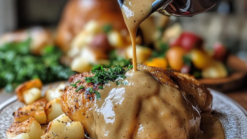 If you’re looking for a gravy that adds a burst of flavor to your holiday meal, this recipe has got you covered. By caramelizing bell peppers and fortifying a rich chicken stock with a mirepoix and herbs, this gravy brings depth and complexity to your table. The finishing touch? A smooth thickening of cornstarch and a sprinkle of Balinese Truffle Salt to bring out all the best flavors. Whether you’re pairing it with turkey, chicken, or even roasted veggies, this gravy will be a hit at any gathering.