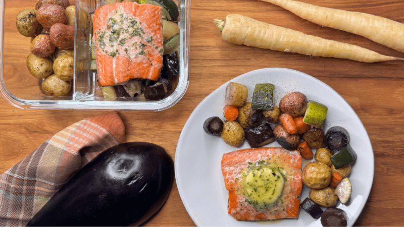 This recipe features our Wild-Caught Alaskan Sockeye Salmon, harmoniously paired with a zesty lemon herb butter that adds a refreshing touch to your meal prep routine. Whether you’re planning for the week ahead or simply craving a delicious and wholesome dinner, this meal is convenient and packed with colorful, fresh produce.