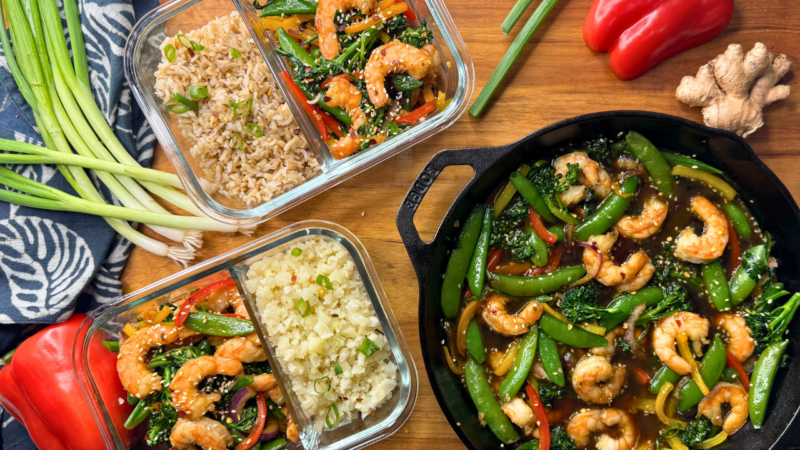 - Divide the stir-fry among air-tight food storage containers, alongside cooked brown rice or cauliflower rice.