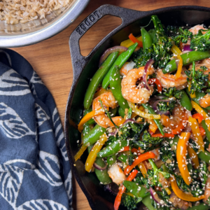 Serve the Sweet and Spicy Sesame Sauce Shrimp, Broccolini, and Snap Pea Stir-Fry: