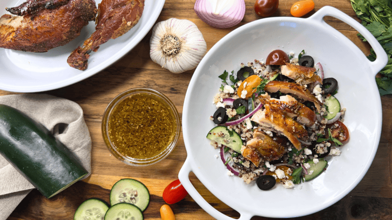 This vibrant and wholesome Mediterranean Quinoa Salad with Roasted Chicken is a delightful dish that brings together the freshness of vegetables, the protein punch of roasted chicken, and the zesty notes of a lemon-herb vinaigrette. Perfect for a light and satisfying meal!