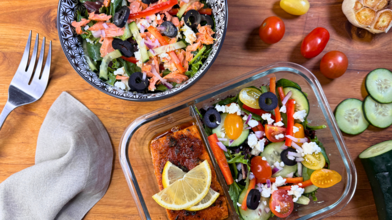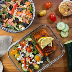 Running out of meal prep ideas? Try our Mediterranean Salmon Salad recipe.