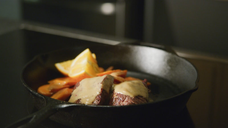 - Preheat skillet and sear on all sides, for 2 minutes per side.